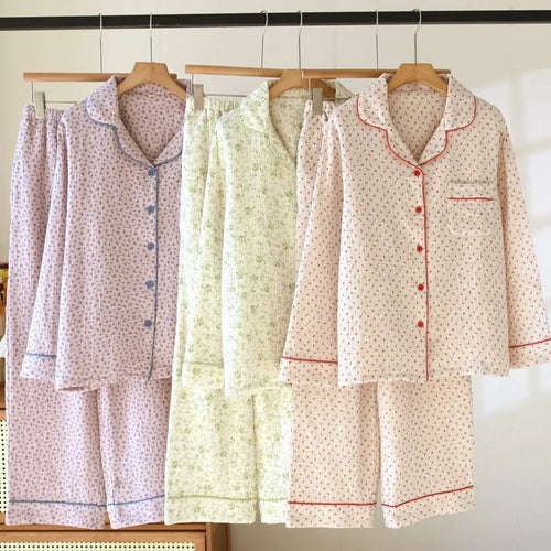 100% Cotton Gauze Women Pajamas 2026 New Spring/Autumn Sleepwear Female 2 Piece Set Nightwear Floral print Lady Pyjamas Loungewe