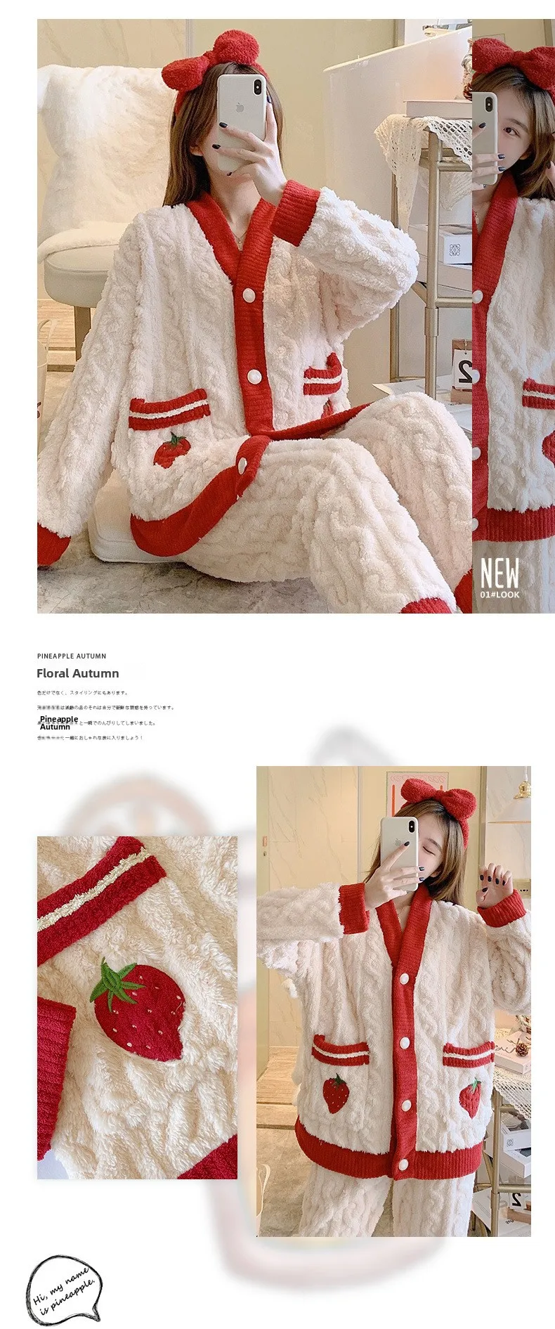 Crafted from thickened coral fleece, this sleepwear offers exceptional warmth and comfort, perfect for the colder months.